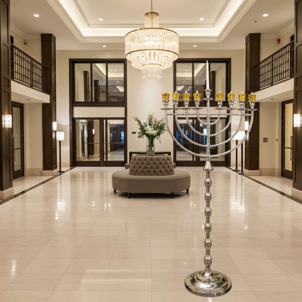 63" Extra Large Chanukah Menorah for Shul - Silver Aluminum